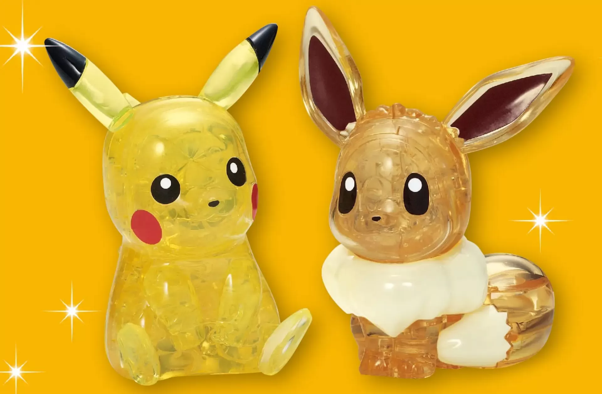 Este quebra-cabeça de cristal vem com 48 peças que formam um Pikachu e um Eevee de cristal!